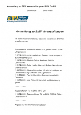 ab Oktober: jeden Mittwoch und Samstag von 16:00 bis 17:00 Uhr